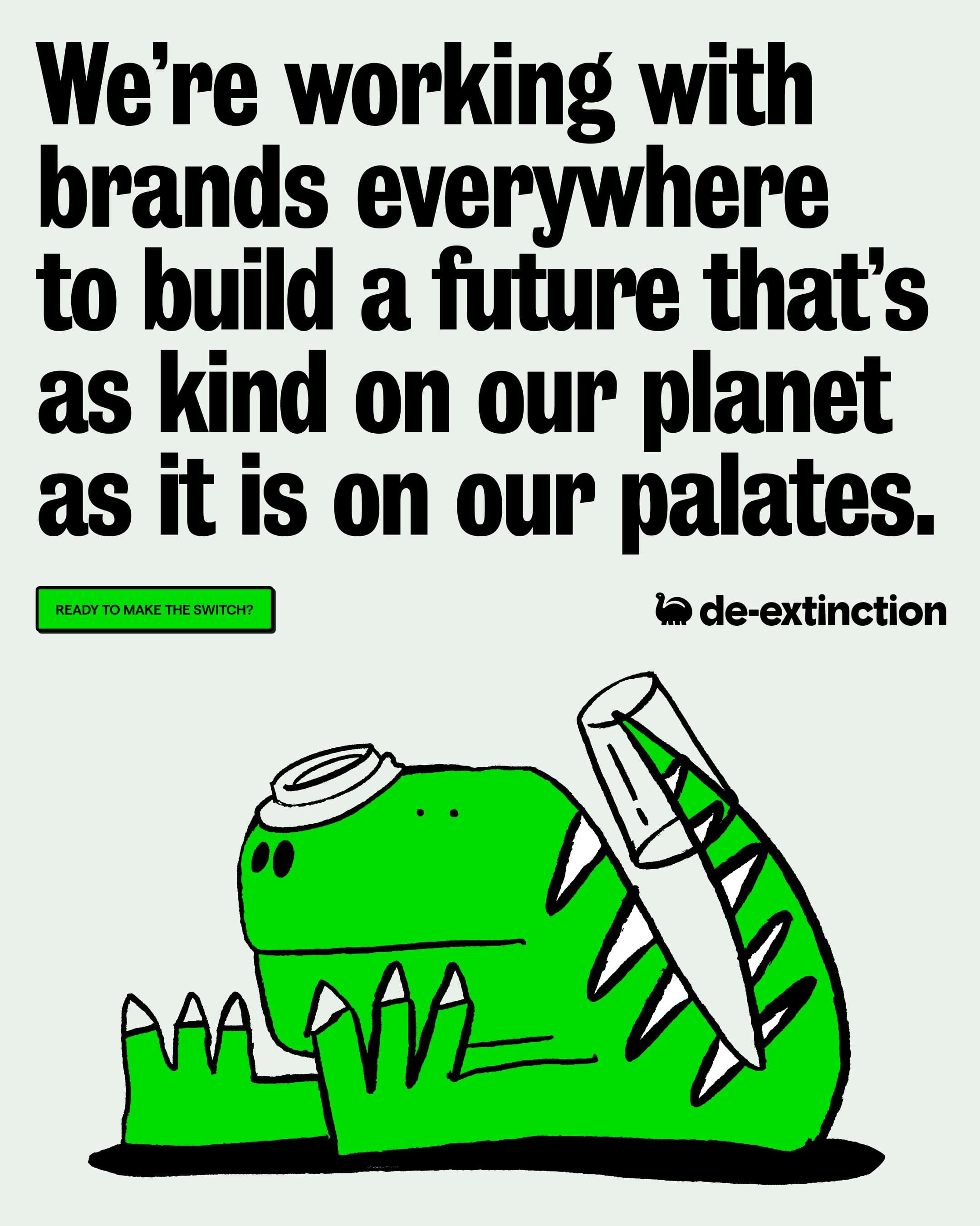 Disposable packaging is stuck in a cycle of bland promises and empty gestures. The category looks transactional, sounds formulaic, and feels hollow. De-Extinction set out to change that by making sustainability urgent, visible and impossible to ignore.