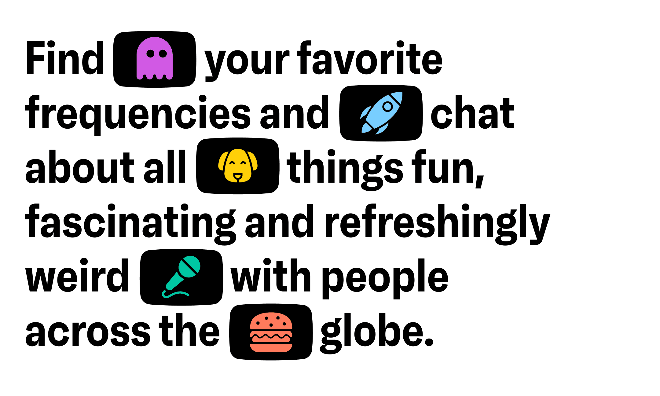 Inspired by Walkie Talkies, our visual identity pairs retro aesthetics with a bold system update, fit for Gen Z. We created a LCD-inspired typeface, refreshed the brand mascot, and built a verbal identity that sets the tone for all types of conversation, from real talk to deep dives.